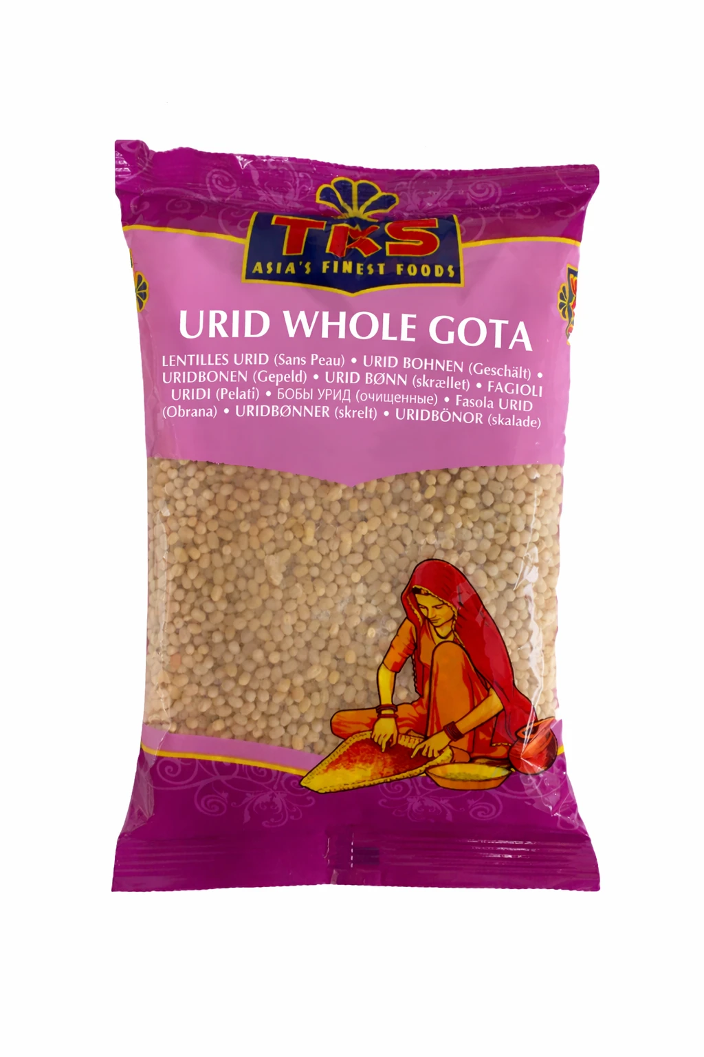TRS Urid Dal Gota (Fasola urid łuskana, całe ziarna) to szczególny rodzaj rośliny strączkowej, znany również jako czarna soczewica łuskana (Black Gram). W przeciwieństwie do połówkowych form dal, Urid Dal Gota to całe, łuskane nasiona o kremowo-białym kolorze. Charakteryzuje się neutralnym, lekko orzechowym smakiem i gładką konsystencją po ugotowaniu. W kuchni indyjskiej stosowany jest zarówno do przygotowywania ciast i past, jak i do kultowych dań takich jak idli (puszyste placuszki ryżowo-strączkowe), dosa (cienkie naleśniki) czy vada (pikantne smażone przekąski). Dla europejskiego odbiorcy Urid Dal Gota można porównać do soczewicy, ale o wyjątkowej właściwości: po zmieleniu nadaje potrawom puszystą strukturę.