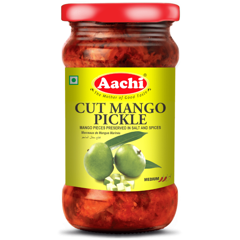 Aachi Cut Mango Pickle to klasyczna indyjska marynata przygotowana z pokrojonych na kawałki zielonych mango, które dojrzewają w mieszance oleju i intensywnych przypraw. Charakteryzuje się wyrazistym, pikantno-kwaśnym smakiem i stanowi jeden z najpopularniejszych dodatków w kuchni południowoindyjskiej. Mango w tej formie zachowuje chrupkość i głęboki aromat.