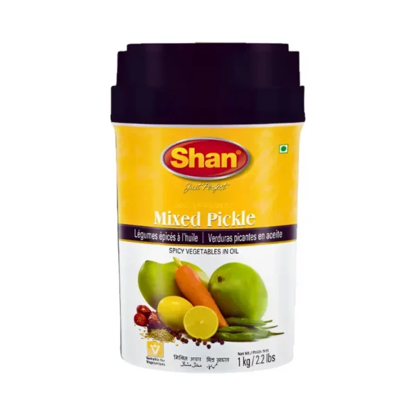 Marynowane warzywa i owoce Shan Mixed Pickle to klasyczna, ostra i aromatyczna marynata, która stanowi esencję kuchni indyjskiej i pakistańskiej. Ta wyjątkowa mieszanka łączy kawałki świeżego mango, marchwi, limonki oraz zielonego chili, marynowane w oleju z bogatą kompozycją aromatycznych przypraw. To doskonały dodatek, który wniesie do Twoich posiłków wyrazisty, kwaśno-słono-pikantny akcent, idealny do urozmaicenia dań ryżowych, chlebków naan czy curry.