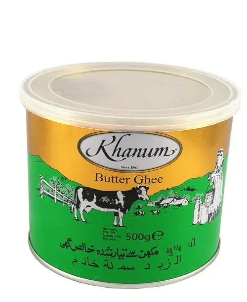 Masło klarowane Butter Ghee Khanum to czyste, tradycyjnie wytwarzane indyjskie masło klarowane (ghee), wytwarzane z wysokiej jakości mleka. Charakteryzuje się intensywnym, maślanym smakiem i gęstą, złocistą konsystencją. Ghee jest kluczowym tłuszczem w kuchni indyjskiej i idealnym dodatkiem do smażenia, pieczenia oraz jako pasta do smarowania chleba, zachowując autentyczny aromat i smak potraw.