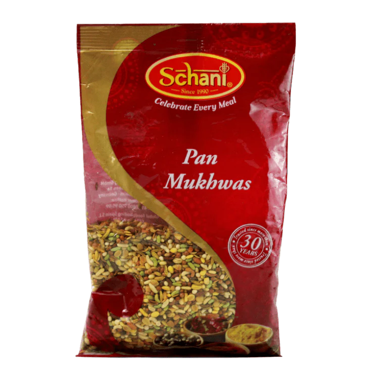 Schani Pan Mukhwas to aromatyczna mieszanka nasion i ziół, która nie tylko odświeża oddech, ale również wspiera trawienie po posiłku. Dzięki zawartości mentolu, cukru, liści curry i kwiatów róży, ta kolorowa mieszanka jest tradycyjną formą ajurwedyjskiego odświeżacza ust. Pan Mukhwas to nie tylko smak – to rytuał po każdym posiłku w kuchni indyjskiej.