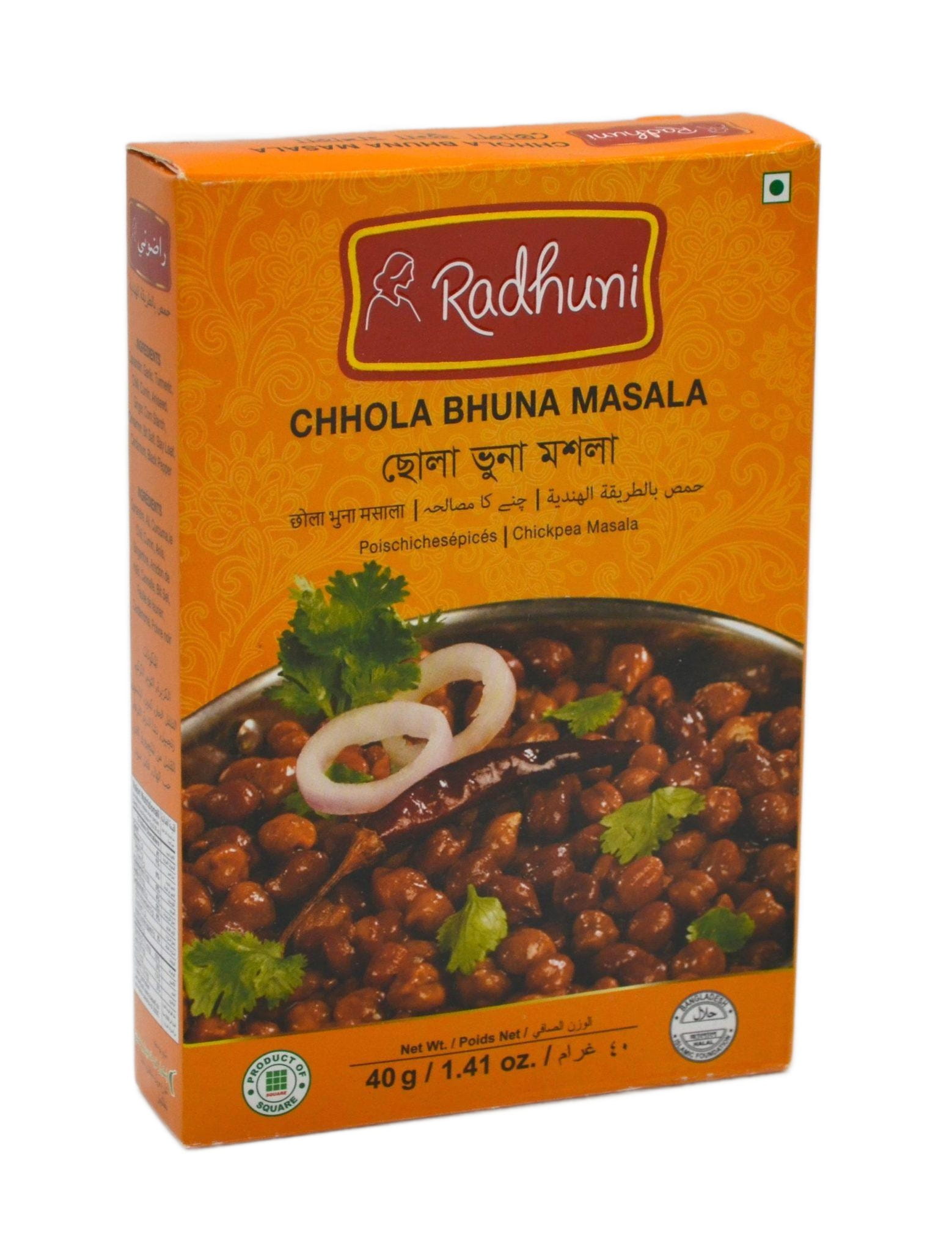 Mieszanka przypraw Chhola Bhuna Masala Radhuni to specjalna mieszanka przypraw przeznaczona do przygotowania tradycyjnego dania z ciecierzycy bhuna. Możesz użyć zarówno białej ciecierzycy, jak i kala chana (ciemnej ciecierzycy). Opakowanie zawiera łatwe do zastosowania, krok po kroku instrukcje gotowania, które pozwolą uzyskać autentyczny smak potrawy w domowym zaciszu.