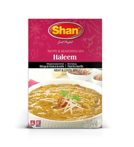 Mieszanka przypraw Haleem Shan – to idealna kompozycja przypraw, stworzona do przygotowania autentycznego Haleem, czyli tradycyjnego, bogatego curry z mięsa i ziaren. Haleem to danie słynące z gładkiej, aksamitnej konsystencji i głębokiego, złożonego smaku, który jest wynikiem długiego gotowania. Mieszanka Shan łączy w sobie aromatyczne przyprawy, takie jak liście curry, kolendra, kmin i imbir, aby nadać daniu wyrazisty, korzenny charakter. To idealne rozwiązanie dla tych, którzy chcą w prosty sposób odtworzyć ten tradycyjny smak w domowym zaciszu, bez konieczności dobierania wielu pojedynczych przypraw.