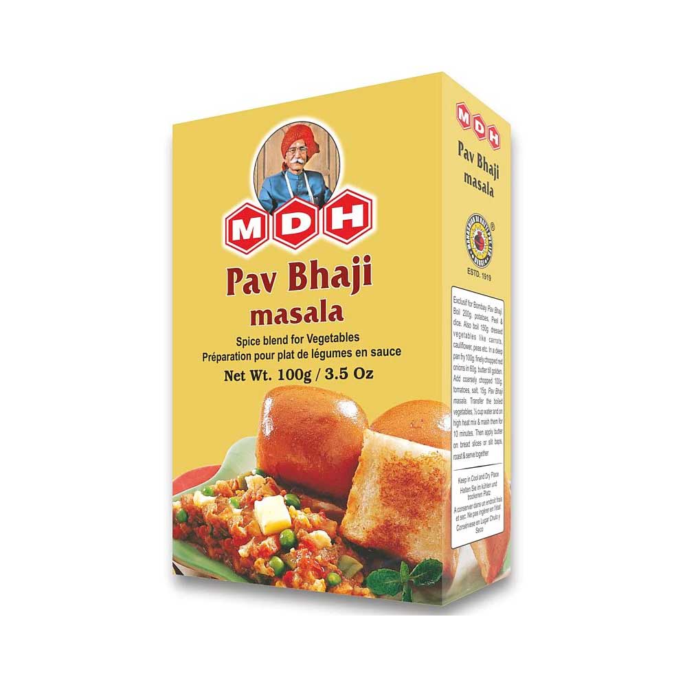 MDH Pav Bhaji Masala to aromatyczna mieszanka przypraw pochodząca z Indii, stworzona specjalnie do przygotowywania tradycyjnego dania „pav bhaji” – warzywnego curry podawanego z maślanymi bułeczkami. Mieszanka charakteryzuje się bogatym, pikantno-korzennym smakiem z nutą cytrusowej świeżości dzięki suszonemu mango. Jest to produkt kultowy w kuchni indyjskiej, często stosowany również do innych potraw warzywnych i dań jednogarnkowych, aby nadać im autentycznego smaku Bombaju.