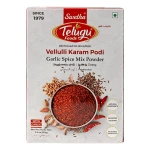 Mieszanka przypraw Vellulli Karam Podi od Telugu (Telugu Velluli Karam Podi) to pikantna, czosnkowa przyprawa w proszku, typowa dla kuchni południowoindyjskiej, szczególnie regionu Andhra Pradesh. "Vellulli" oznacza czosnek w języku telugu, a "Karam Podi" odnosi się do ostrej przyprawy w proszku. To intensywna mieszanka prażonych przypraw, suszonego czosnku i chilli, z dodatkiem oleju z otrębów ryżowych, nadająca potrawom wyrazistości, ostrości i głębokiego aromatu. Doskonale komponuje się z ryżem, ghee (klarowanym masłem), a także daniami z soczewicy i warzyw.
